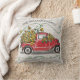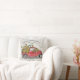 Este travesseiro do estilo country caracteriza um caminhão vermelho do vintage que transborda com os girassóis amarelos de florescência. Os flourishes verdes decorativos acentuam o nome de família acima e uma inicial do monograma na parte traseira. Uma folha de prova de madeira da textura dá ao travesseiro um olhar rústico. Faz uma adição à moda a sua decoração do outono.