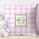 Decore o quarto da sua criança com esta almofada encantadora que apresenta um padrão xadrez rosa e branco doce com detalhes de borda rendilhada na moda, bolinhas divertidas e um monograma personalizável. Este design clássico irá complementar qualquer estilo de decoração, tornando-o um adição versátil para o quarto de um bebê, criança ou menina. Modifique a inicial e o nome para adicionar um toque pessoal ao espaço de uma jovem.