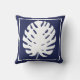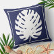 Almofada Monstera Leaf Marinho Azul e Branco Costeiro Moder