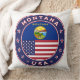 Crachá de Montana com bandeira de Montana e bandeira dos EUA cores, forma arredondada. Emblema de Montana. Selo de Montana. Coleção dos Estados Unidos.