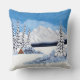 Uma cena tranquila de inverno que se estende sob um céu pálido e prateado. Montanhas cobertas de neve se erguem ao longe, seus picos suavizados por nuvens flutuantes.