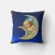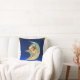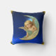 Bronzeado brilhante e loiro, anjo romântico de olhos azuis pendurado na Lua com uma brilhante pedra azul da safira em 3D