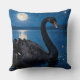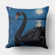 A detailed black swan glides on a calm lake under moonlight. This image features complementary colors and reflections, evoking classical academic and romantic art styles.