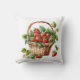 Travesseiro com uma nova vibração de verão. Uma ilustração fofinha com morangos colhidos frescos enchendo um cesto mais fraco.