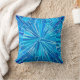 Travesseiro decorativo em um padrão moderno, geométrico, de explosão solar, em tons de azul pastel a azul-céu profundo e azul-cobalto, acentuado com marinho / azul-indigo