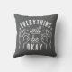 Add a comforting touch to any space with this cozy accent pillow featuring the reassuring message "EVERYTHING will be OKAY" in crisp white typography. The design includes two hands making the "OKAY" gesture, offering a visual reminder of calm and encouragement. Set against a dark gray background, this pillow blends emotional warmth with modern style, making it a thoughtful gift for friends going through transitions, college students settling into dorm life, therapists decorating their offices, or anyone who appreciates meaningful decor. Whether placed on a couch, bed, or reading nook, it’s a gentle daily affirmation wrapped in softness.