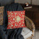Padrões florais chineses tradicionais em vermelho e creme, de uma antiga ilustração de arte oriental que Alma Wad tocou. Travesseiro decorativo para seus quartos com um tema asiático