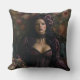 Travesseiro decorativo de Mulher Gótica Rococo. © Desejos do Coração Escuro. Esta almofada tem uma bela cadeira no estilo Rococo e papel de parede floral com a mulher gótica em um vestido vintage nela.