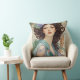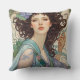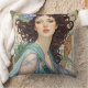 Esta almofada elegante Art Nouveau retrata uma linda mulher do início do século com cabelos escuros ondulados e flores lilás. Clique para comprar esta almofada única Art Nouveau.
