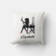Personalize acrescentando seu nome a essa travesseiro decorativo chic e na moda com uma silhueta de uma mulher de moda, vestindo calçados cor-de-rosa-quente salgados com arcos bonitinhos, sentada numa vaidade de maquiagem e admirando sua reflexão feminina num espelho. As costas têm um padrão de impressão de zebra preto e rosa moderno.