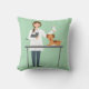 Almofada Mulher Veterinária Com Animais Em Verde