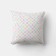 Apresenta um padrão divertido de pontos multicolores em um fundo branco.