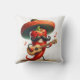 Uma pimenta vermelha antropomórfica vestindo um grande bigão e bigode preto enquanto apertava um violão