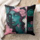 Composición más expresiva y abstracta: rostro femenino con contrastes bicolor, trazos fluidos, manchas y líneas que generan movimiento y profundidad. La flor central actúa como sello botánico de la colección, manteniendo la estética neon teal & pink para una línea uniforme en cojines, sudaderas y pósters.