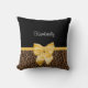 Mantenha-se na moda com este travesseiro decorativo de pele-leopardo marrom-na moda com uma fita amarela elegante amarrada num arco chic. Personalize este design de impressão animal moderno e clássico adicionando seu nome. Imagem impressa plana, não com pelo ou fita real.