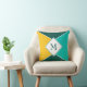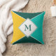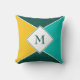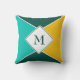 Folheto simples, mas na moda PERSONALIZÁVEL, do MONOGRAM, mostrando triângulos e quadrados em cores de verão de AMARELO, LEVE TEAL e PETROL BLUE. Travesseiro correspondente disponível. Excelente adicional para a decoração de casa de verão.