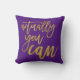 Travesseiro com elegante guião dourada com palavras de encorajamento Na Verdade, Você Pode. A cor de fundo roxa pode ser alterada para outra se você quiser corresponder à decoração da sua casa!
