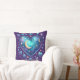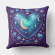 Um belo coração azul sobre um fundo noturno roxo e estrelado, com a lua e constelações.