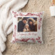 Um elegante travesseiro decorativo botânico de design de Natal, com 'Saudações de Seasons' em uma letra de na moda em um vermelho clássico. Personalize o nome da família e o ano e adicione sua própria foto para criar um travesseiro decorativo festivo personalizado para acessar sua casa durante os feriados.