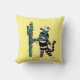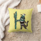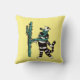 Travesseiro natalício de cacto, com um desenho de tinta digital, de uma adorável personagem gatinho, com uma flor na cabeça, quase sufocada por um cacto com as mesmas flores e bolas de Natal da garland.
