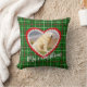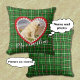 Esta linda almofada de Natal é uma celebração carinhosa do seu amigo fiel. Há um desenho de fundo em estilo xadrez em vermelho, verde e branco na parte frontal e traseira da almofada. Envie sua foto favorita e adicione um nome ou outro texto curto. A foto é emoldurada em um coração vermelho com uma borda de pegadas de patas brancas.