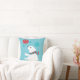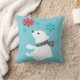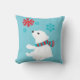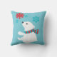 Este travesseiro decorativo temático do feriado do Natal caracteriza um fundo azul com um urso polar branco que veste um lenço azul e vermelho que guardara um balão do floco de neve.