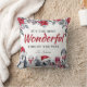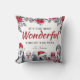 Travesseiro de decoração de natal de inverno com um simples fundo branco, florais e folhagem elegantes de Natal, pinguins de bebê bonitos, um espalhamento de neve, o ditado "é a época mais maravilhosa do ano", e seu nome de família. A parte de trás do travesseiro é um vermelho festivo tradicional, mas pode ser mudado para qualquer cor.