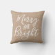 Manuscrito brilhante e feliz | Travesseiro decorativo de férias em kraft e branco. Design de tipografia moderna da fazenda por Blackberry Boulevard "Feliz e Brilho" escrito em uma fonte branca em um fundo de cor kraft. Outras cores disponíveis no armazenamento. Travesseiro de sotaque perfeito para sua decoração de casa de férias.