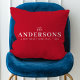 Um travesseiro moderno na moda com seu sobrenome, representado na tipografia clássica, emparelhado com script manuscrito em branco sobre uma linda cor vermelha brilhante. Uma design elegante e mínima para se destacar da multidão nesta época de natal!