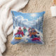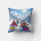 Adorável travesseiro decorativo de Natal com uma adorável cena de inverno com crianças a dormir alegremente na colina.