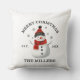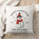 Bonita travesseiro decorativo de Natal Personalizado do Snowman, adicione o seu nome de família e a data estabelecida. Isto faz uma decoração muito bonita para as férias ou faz um presente de Natal para a família excelente!