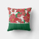 Travesseiro vermelho do Natal da poinsétia. A parcela inferior é riscas brancas verticais em um fundo verde escuro e a parcela superior é poinsétias vermelhas.