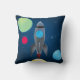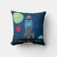 Céu espacial da noite escura com planetas coloridos e brilhantes e estrelas brancas, com um foguete prateado voando pelo céu. Excelente para um quarto de meninos para a cara que ama espaço e viagem. Todos os Designs Copyright © 2012 www.CuteComfy.com
