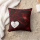 Várias sombras de vermelho são apresentadas em travesseiro decorativo. O design é uma foto digital de violas delicadas. O creme escuro vermelhos e tons de rosa claro juntam-se para dar a esta travesseiro a aparência de neon. Há um coração branco com texto vermelho profundo que diz, "FELIZ DIA DE OS NAMORADOS", no canto inferior esquerdo, do travesseiro. O texto pode ser personalizado ou você pode remover o texto e o coração.