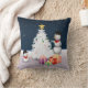 Ilustração gráfica emblemática e festiva com dois bonitinhos de neve decorando a árvore de Natal com canas doces, luzes de natal e uma estrela superior.