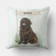 Add cozy charm to your home with this Newfoundland throw pillow featuring a watercolor design and customizable name flag. Newfoundlands bring peace, comfort, and love to any space.
