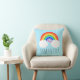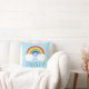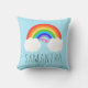 O amante do arco-íris em sua vida vai adorar este travesseiro decorativo personalizado! Este design bonitinho apresenta um grande gráfico arco-íris com nuvens e corações cor-de-rosa na frente juntamente com a sua escolha de nome. As costas têm um padrão arco-íris. Ambos os lados têm um fundo azul-céu. É a adição perfeita a qualquer decoração do tema do arco-íris. Você pode personalizar para alterar a fonte ou a cor do plano de fundo.
