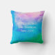 Engraçado, elegante e artístico travesseiro de aposentadoria com "Tensão Adeus / Alô Pensão" na frente e "Feliz Aposentado" nas costas, personalizado com o nome do aposentado e o mês e a data de sua aposentadoria. Observe que você pode manter ou excluir estas últimas informações e alterar as mensagens restantes também, por exemplo com algo como "Sem estrutura / Sem problema" ou "Sem chefe / Sem problema" O travesseiro tem um plano de fundo de aquarela colorido elegante com cores vívidas: rosa, azul e verde, juntamente com toques de branco.