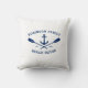 Convidando uma almofada de travesseiro decorativo na moda com uma âncora náutica projetada personalizada e remos cruzados com seu nome de família personalizado e texto da casa de praia em azul marinho em branco ou cores facilmente personalizadas para corresponder ao seu tema de decoração atual.