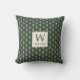 Travesseiro de Natal personalizado com estilo rústico desenhado à mão, verde floresta e pinheiro bege design com monograma personalizado de nome familiar.