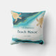 Douradas tartarugas tribais sobre um fundo de mármore de tinta azul de cor d'água azul em turquesa. Personalize este travesseiro marítimo da casa de praia com seu nome familiar e seu dia estabelecido.