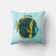 Peixes bonitos personalizaram crianças travesseiro com um trabalho de arte digital representando um peixe-anjo tropical giro com pestanas compridas em adoráveis cores azul e amarela. Excelente adicional a uma decoração de quarto de berçário sob o tema "O Mar".