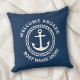 Travesseiro decorativo com seu nome de barco personalizado e âncora com borda circular de corda e o texto "Bem-vindo a bordo" ou outro texto personalizado