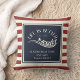 Almofada Nome do barco com listras azuis de marinho vermelh