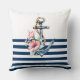 Almofada Nome do Barco,Marinho de Âncora Floral Blue Stripe