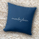 Almofada Nome do Cheio do Monograma Azul do Marinho Moderno