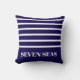 Fundo azul escuro e faixas brancas. Personalize e adicione um texto, nome do barco, nome da casa de praia.