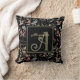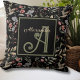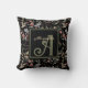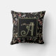 Este travesseiro monográfico tem o seu nome familiar e inicial em verde-sábio e ouro quente, num padrão de ilustração de arte aquosa com flores, folhas, bagas, pássaros e lebres em fundo preto. Perfeito por adicionar um toque de na moda à sua decoração caseira, você vai adorar esta tendência, design botânica rústica.
