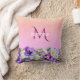 Almofada Nome do monograma de flores cor-de-rosa violeta