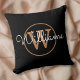Travesseiro decorativo clássico de monograma preto e dourado. Você pode personalizar o nome, monograma e personalizar a fonte e as cores para criar seu próprio design único. Projetado por Thisnotme©